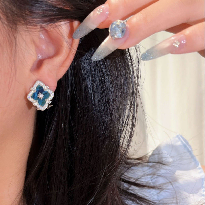 Vintage Italian Buchi Clover Blue Phosphorus Grey Necklace Bracelet Earrings